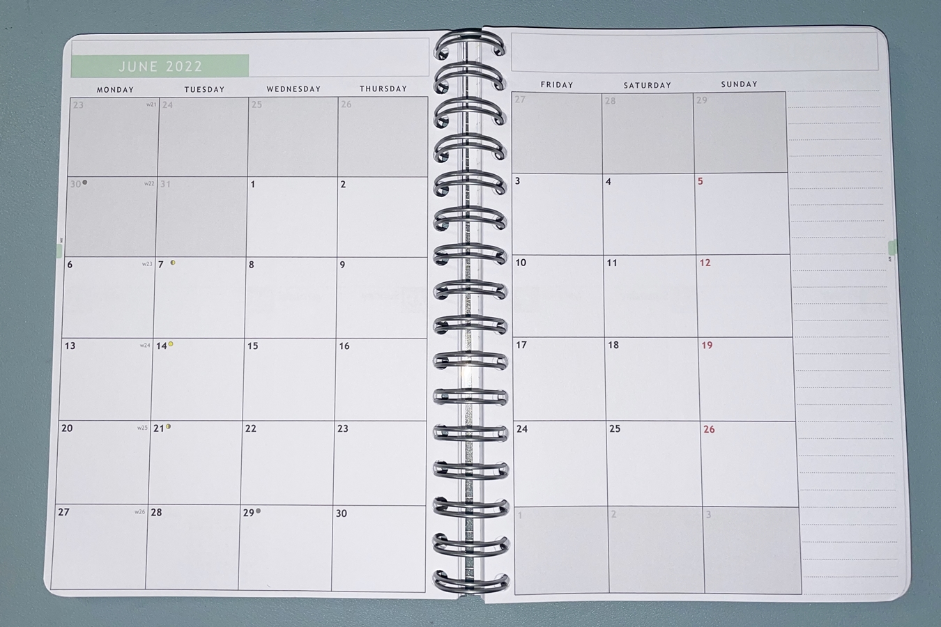 The weekly views are where I note down the deadlines and appointments of my bosses. Sorry can’t show completed pages as this is my job after all.