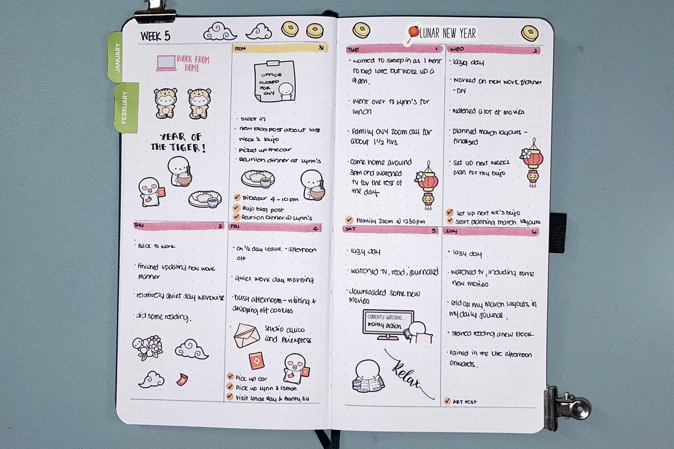 Week 5 is going to be a short work week for me thanks to the Chinese New Year holidays so I went with a quartered page layout again.