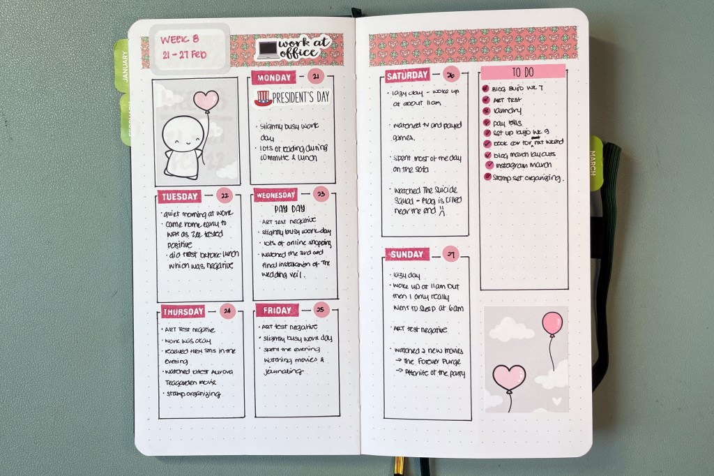 One response to “Bullet Journal 2022 – Week 8”