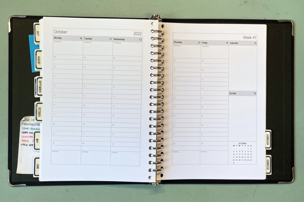 I use this mainly for a brief overview of holidays, birthdays, trials and if any of my team is on block leave. In case I haven’t mentioned it before, I work in a large law firm and have 3 bosses – used to have 4 but one was assigned a new secretary. I’m only really required to keep track of the appointments of the partner as his associates work mainly on his files.