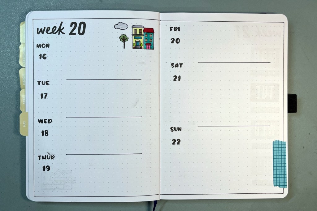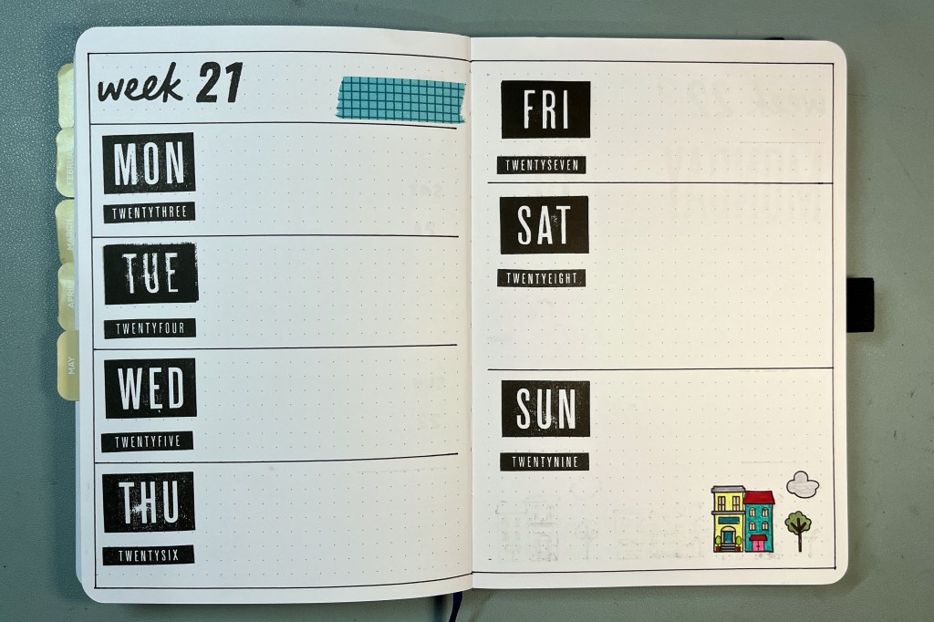Given that the first day of May falls on a Sunday, I put a filler page at the beginning of the month.