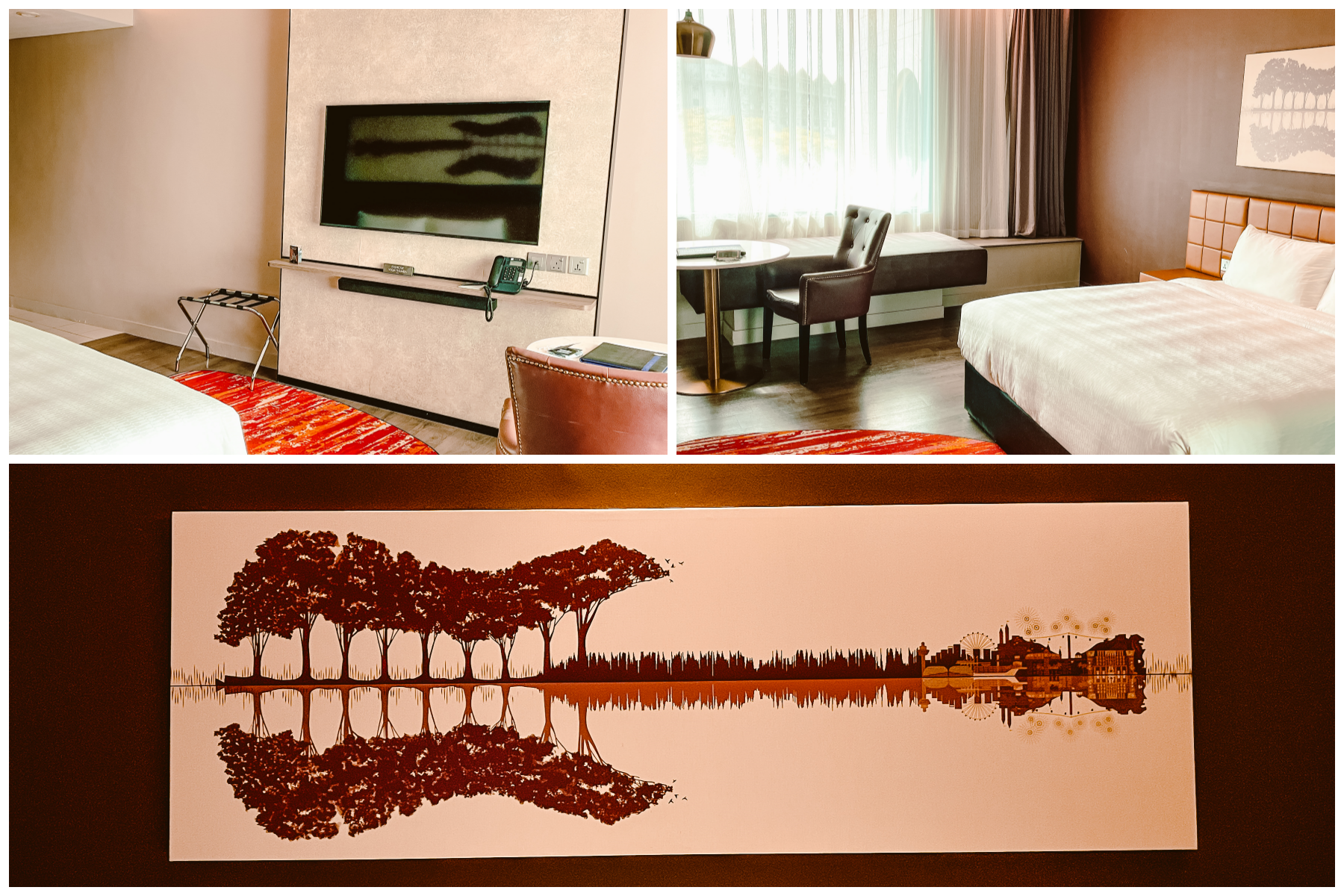 I’m loving the artwork on the wall above the bed, it’s got the Singapore skyline and the trees of Sentosa combined into the shape of a guitar.