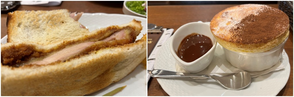 I wandered around the mall for a while and did a bit of shopping – picked up a packable UV parka to use tomorrow just in case there is light rain or strong sun. After getting that, I went to grab lunch at Hoshino Coffee. I ordered the Tonkatsu sandwich and a vanilla souffle with chocolate sauce. I only ate half of the sandwich because I wanted to keep room for the souffle which was complete yum!!!! So light and fluffy!!! I’m in love with a souffle and I’m not ashamed to admit it hahaha.