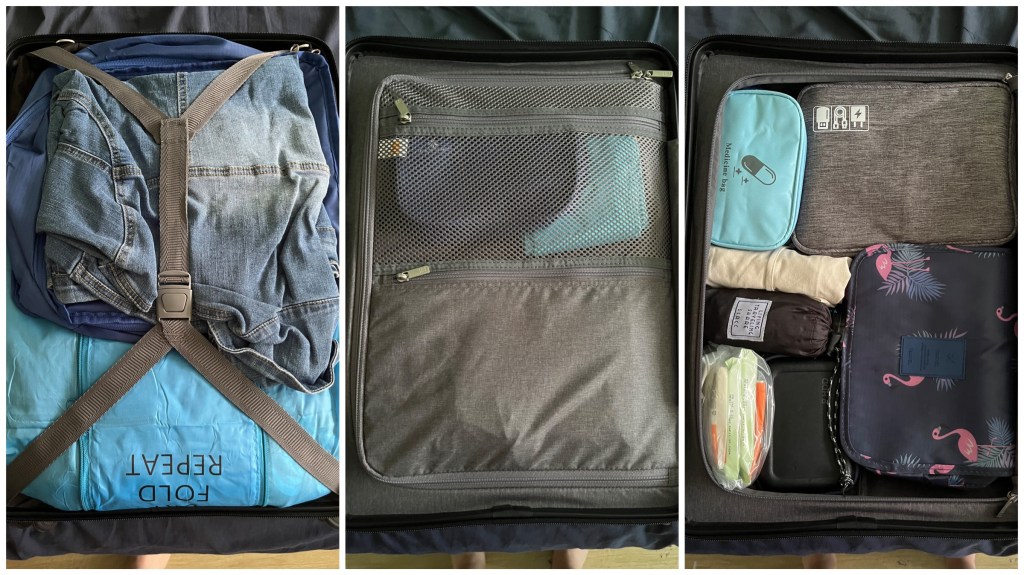 I woke up early so I could pack. I like using various pouches to help group things together to keep organised and it also helps with packing. It didn’t take me long, about 25 minutes.