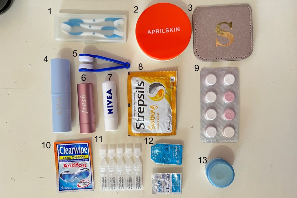 12. Contact lenses – I’ll wear my glasses during the flight but put these on before landing