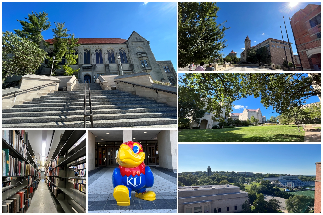 My bestie’s eldest son is a sophomore at the University of Kansas so we asked him to give us a tour of the campus before school reopened. We didn’t go into every building but we did walk around most of the campus which included climbing up on super steep hill (my thighs were not happy). The campus is quite large and consists of a number of different buildings built in different eras which can be seen from the different architecture. The campus itself is on the US National Register of Historic Places. There are also numerous statues of the school’s mascot – the Jayhawk. Some show how the look of the mascot has changed over the years and some are ones that have been donated by graduating classes.