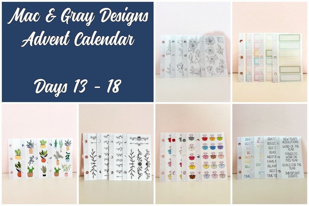 I got a whole of mini sticker sheets with different themes – (13) flowers; (14) boxes; (15) plants; (16) borders; (17) happy mail; and (18) planner prompts.