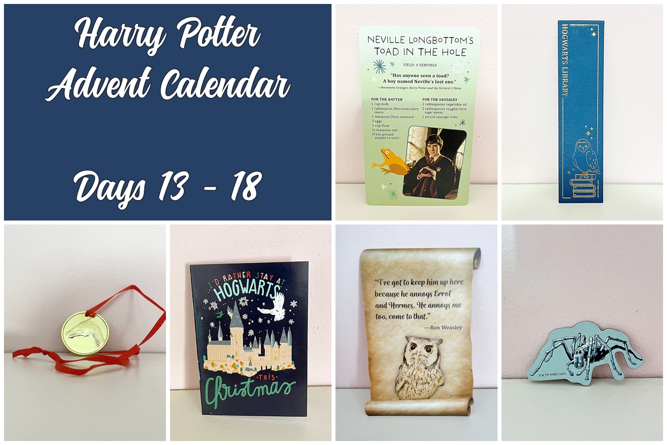 (13) recipe card; (14) leather bookmark; (15) dragon medal; (16) mini notebook; (17) quote card; and (18) mini magnet.