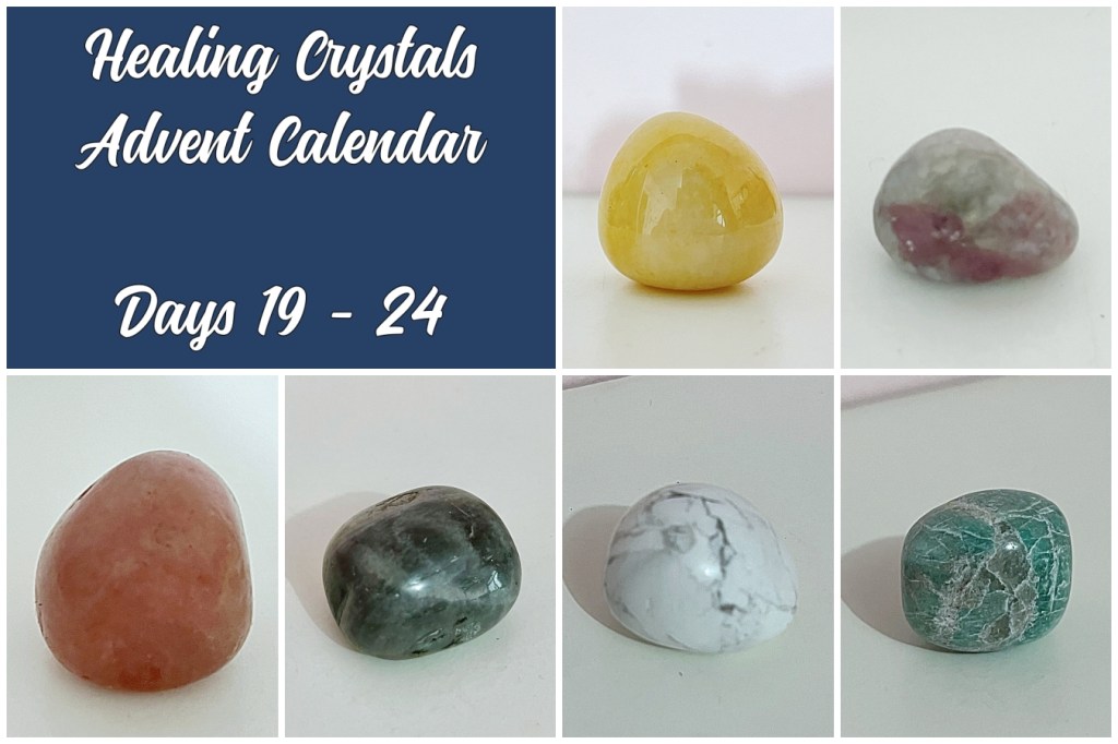 (19) coral jade; (20) pink tourmaline; (21) strawberry quartz; (22) labradonite; (23) howlite; and (24) amazonite.