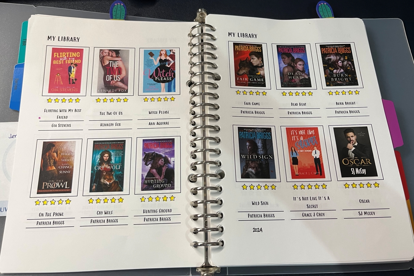 I’ve actually been using this since last year. I have 3 sections in – (1) my reading challenge bookshelf. My goal this year is 100 books and I colour in a book everytime I finish one. (2) My books I’ve read record. This is just a list of the books I’ve read each month and I note when I started reading and when I finished it, how many pages and in what format I have it. I also have an electronic version of this record using an Excel Worksheet so that I can a running track on my challenge. (3) Is My Library. This is just a record of the books I read as I read them with a picture of the front cover of the book (see above). This is where I indicate my star rating. I will usually pick 12 books ahead of time so that I can print out one page of this record with the covers on them.