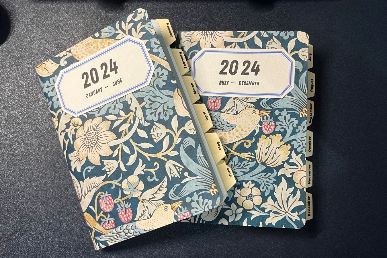 I use an A5 20 ring binder and paper for this journal. You can buy the paper already hole-punched and I print directly onto the paper.